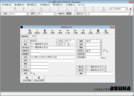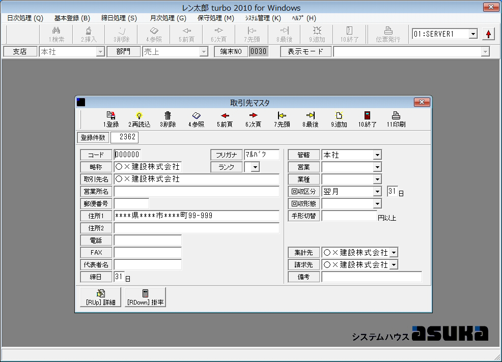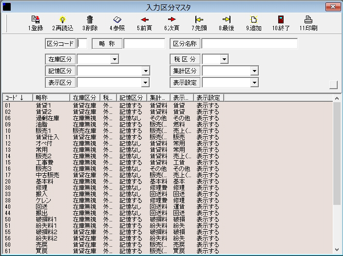 ツールバー基本登録→マスタ3→入力区分マスタ