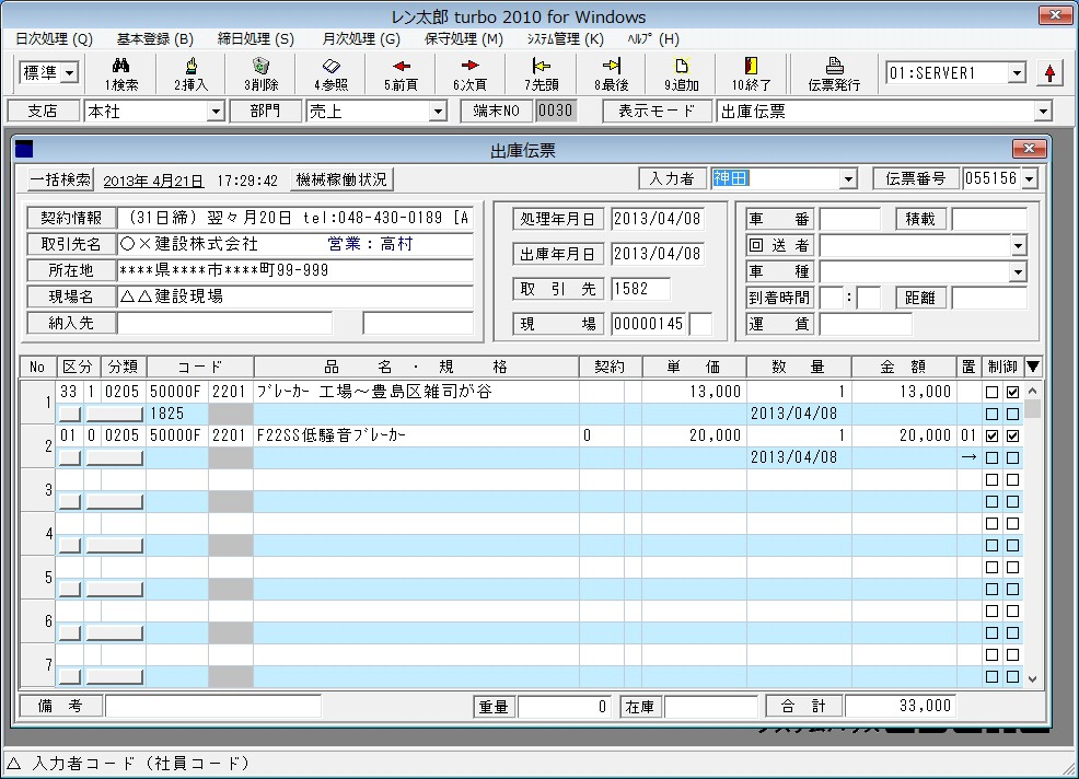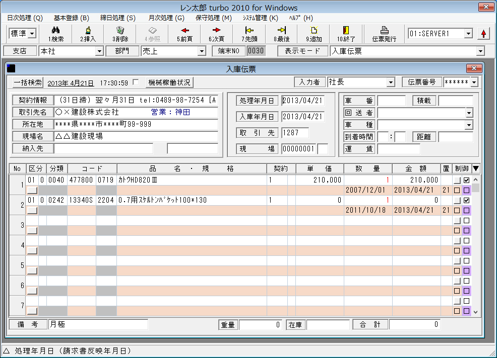 休止日入力にも出庫時、入庫時どちらでもカレンダーからの入力が可能。